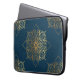 A pattern of beautiful gold mandalas repeated into an ornate damask pattern. The gold is shiny to imitate real gold foil. The mandalas are designed with intricate, hand drawn line work and placed on a deep navy blue background.