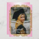 Unique and trendy congratulations graduate announcement and celebration party invitation card, with a classic faux shiny gold colored mandala circle on a candy pink and white ombre gradient pattern background. With room to customize or personalize with a photo, the name of the graduate, class graduation year, high school and future college or university name. Let the family, friends and neighbors know there is a happy graduate ready to conquer the world, and invite everybody to come celebrate the happy event with you!