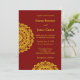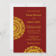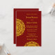 This elegant wedding invitation is crafted on a deep red background, adorned with intricate gold mandala designs that radiate sophistication and cultural richness. The shimmering gold accents contrast beautifully against the vibrant red, creating a sense of opulence.