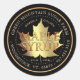 This black sticker with a metallic gold gradient sugar maple leaf will make your syrup stand out from the crowd. "MAPLE SYRUP" is written in a chiseled metallic maple-colored font. Customize this label with your business name, address, phone, volume of syrup and maple syrup grade. Common maple syrup volume amounts in ounces and mls are listed in the editable form field. Maple syrup grades are also already listed in the form field for you - all you have to do is choose the one you need.
