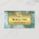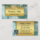 Business card featuring an abstract teal green marble-look design with a gold frame to allow for easy addition of text. The logo is optional, as is the easy to customize QR code template on the back.