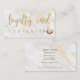 White marble background with gold accents and a custom script in elegant handwritten font. Back side hold all business information in elegant minimalistic font