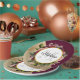 Gold Marble Pattern and Burgundy Floral Monogram Paper Plates