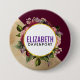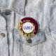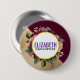 Personalized button with a golden marble pattern and a solid burgundy color layered diagonally together. A circle with a faux gold foil border which is layered over a pretty floral bouquet with roses, carnations and other flowers. Personalize with your name inside the circle.