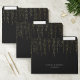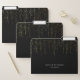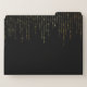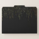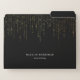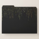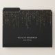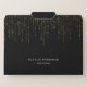 Chic file folder set features a rich black background with vertical strands of faux gold foil string lights cascading from the top. Personalize with two lines of custom text in classic white lettering.