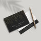 Elegant gift certificate design displays your name and/or business name in classic white lettering on a rich black background adorned with vertical strands of faux gold foil string lights. Add your desired gift certificate wording and business contact information on the reverse side. A chic and elegant choice for salons, makeup artists, hair stylists, spas, boutiques and more.