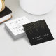 Elegant and simple design in a unique square format features classic white lettering on a rich black background with vertical strands of faux gold foil string lights cascading from the top. Personalize the front with your name and business name or occupation, and add your full contact information to the reverse side. A beautiful choice for any occupation; example shown for aestheticians.