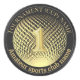 Hockey puck featuring a gold medal image that can be awarded to first-place winners during award ceremonies of amateur hockey sports clubs.