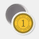 Gold medal champion winner 1st place custom magnet . Custom yellow gold medal award seal design for number one. Add your own personalized text. Modern round magnet gift reward idea for contest winner, game champion, sports achievement, office champ, athlete, school team, promotion, kid's Birthday party, wedding games, tournament etc. Customizable first place medallion in a competition. Double sided.