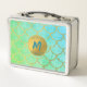 Gold Mermaid Scales Teal Glitter Pattern Monogram Metal Lunch Box
