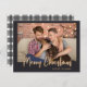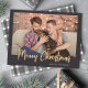 Gold Merry Christmas Bubble Letters Plaid Black Holiday Card
