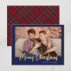 Gold Merry Christmas Bubble Letters Plaid Navy Holiday Card