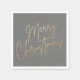 Merry Christmas text in chic fancy lettering in gold faux foil is featured on gray holiday paper napkins. MATCHING paper plates and more in our store.