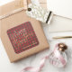 Merry Christmas in a faux gold foil script and your names in chic lettering, these red and gray buffalo check pattern square stickers are stylish for any Christmas holiday occasion.