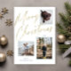 Gold Merry Christmas Script 3 Photo Holiday Card