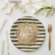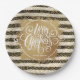 Gold Merry Christms Black White Stripes Paper Plates