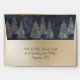 Faux gold metallic with deep blue background and faux fairy pine trees on back flap. Return address on bottom. Simple and yet so beautiful and elegant. Make a statement with this chic envelope. All your guests will love receiving their invitation in such a lovely envelope. Great for weddings, Christmas, New Year’s.