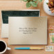 Faux gold metallic with Emerald green background and faux fairy light drape/garland on back flap and address on bottom. Simple and yet so beautiful and elegant. Make a statement with this chic envelope. All your guests will love receiving their invitation in such a lovely envelope.