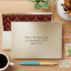 Faux gold metallic with red background and faux fairy light drape/garland on back flap. Return address on bottom. Simple and yet so beautiful and elegant. Make a statement with this chic envelope. All your guests will love receiving their invitation in such a lovely envelope.