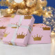 Gold Metallic Foil Crown Crowns Pink Royal Modern Wrapping Paper
