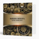Image of a metallic gold texture background with geometric metallic steampunk circles and dark brown customizable text.