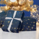 Gold Midnight Blue Sparkle Christmas Holiday Wrapping Paper.