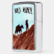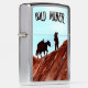 An Old Gold Miner briefly stops with his pack mule while pondering his best area to prospect. Painting depicts a hot sunny day with cotton like clouds over head with silhouetted figures. If you know someone who collects Zippo lighters then this is for them.