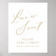Modern script minimalist wedding love is sweet take a treat sign in gold color, simple and elegant.