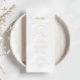This gold minimalist calligraphy dinner menu card is perfect for a rustic wedding. The simple and elegant design features classic and fancy script typography in gold.