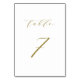 Table 7. Complete your tablescape with this elegant and simple table numbers card. It features gold minimalist script with white background. This script table number is perfect for weddings, graduation, baby showers, bridal showers and other events. Other number and colour are available.