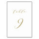 Table 9. Complete your tablescape with this elegant and simple table numbers card. It features gold minimalist script with white background. This script table number is perfect for weddings, graduation, baby showers, bridal showers and other events. Other number and colour are available.