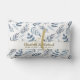 Gold Monogram Azure Blue Botanical Leaves Wedding Lumbar Pillow