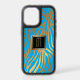 Gold Monogram Blue Tiger Stripe Pattern Otterbox iPhone Case