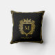 Add a touch of royal sophistication to your home with this Gold Monogram Crest Throw Pillow. Designed for elegance, this luxurious pillow features an ornate crest adorned with a regal monogram, exuding timeless charm and prestige.Under your Family name followed by established year. Easy template for you to update with your own personal text front and back. The rich gold detailing against a classic solid background creates a refined aesthetic, perfect for enhancing any living space, bedroom, or office. Comes in different color combinations and design on both sides..