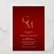 Gold Monogram Crimson Red Photo QR Code Wedding Foil Invitation
