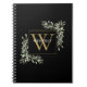 Gold Monogram Elegant Eucalyptus Greenery Black Notebook