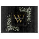Gold Monogram Elegant Greenery Foliage Black Cutting Board
