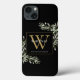 Gold Monogram Elegant Modern Black Greenery Case-Mate iPhone Case