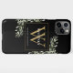 Gold Monogram Elegant Modern Greenery Black iPhone Case