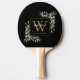 Gold Monogram Elegant Modern Greenery Black Ping Pong Paddle