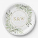 Gold Monogram Eucalyptus Greenery Paper Plates