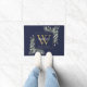 Gold Monogram Greenery Floral Navy Blue Doormat