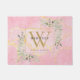 Elegant personalized watercolor floral greenery monogram name doormat featuring a gold monogram initial on a pink agate geode background. Designed by Thisisnotme©