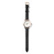 Has heft and feel of expensive stainless steel quartz watches. Good band with safety catch. I removed links, which is easy because engraved arrows show direction to push the linking pins. As always by this seller, the image (a railroad logo) is a perfect reproduction of my emailed image, and is precisely spaced and aligned.