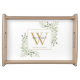 Elegant watercolor greenery monogram name serving tray featuring a gold monogram initial. Designed by Thisisnotme©