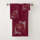 Gold Monogram Name Greenery Burgundy Bath Towel Set