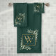 Gold Monogram Name Greenery Emerald Green Bath Towel Set