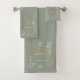 Gold Monogram Name Greenery Sage Green Bath Towel Set