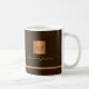 Luxury exclusive looking office or personal monogrammed coffee mug featuring a faux copper brushed metallic gold square with your monogram name initials and a metal look stripe over a stylish dark brown faux leather texture (PRINTED) background. ++++++++++++++ Suitable for small business, corporate or independent business professionals, personal branding or stylists specialists, makeup artists or beauty salons, boutique or store managers.