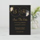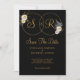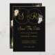 Gold Monogram On Black Bride Groom Name Wedding Save The Date Card. Share your special moments with your family and friends in style. Easy to customize both front and back of card with your unique save the date information. Get yours today!